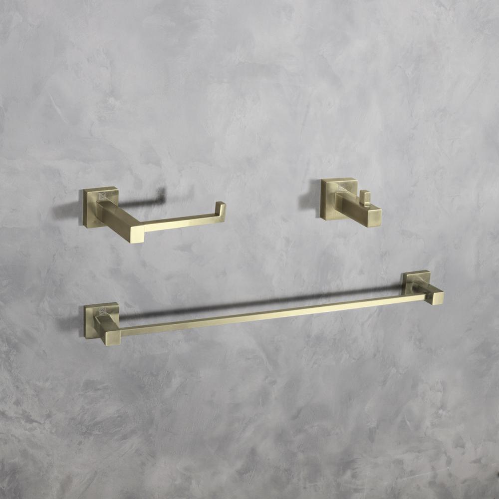 Revamp your bathroom with our exclusive Bathroom Hardware Set, available in a variety of stunning finishes: brushed gold, brushed nickel, Chrome, and Matte Black. This meticulously designed set is the all-in-one solution for your bathroom needs, including a generous 22.5" long towel bar, a practical 6.3" open-ended toilet paper holder, and a handy 2.83" towel/robe hook. Crafted from high-quality stainless steel, our hardware set not only adds a touch of luxury to your bathroom but also ensures unrivaled durability. Stainless steel's natural resistance to corrosion, stains, rust, and scratches guarantees that your bathroom remains as stunning as the day you installed it. The open-ended design of the toilet paper holder simplifies roll replacement, offering convenience and practicality. Installation is hassle-free, thanks to the included mounting hardware, making it a straightforward DIY project for homeowners. Each item is thoughtfully designed for wall-mounted installation, saving space and ensuring a secure fit. The stainless steel finish is not only visually appealing but also easy to maintain, eliminating the need for frequent scrubbing and polishing. The minimalist design of our hardware set ensures its adaptability to any bathroom decor, making it the ideal addition to your space. Invest in a bathroom that stays as stunning as the day you installed it, thanks to our hardware set's corrosion, stain, rust, and scratch resistance. Experience the perfect blend of aesthetics and functionality, complete with easy installation and easy maintenance. Elevate your bathroom with our premium Bathroom Hardware Set, where style, convenience, and durability converge. Transform your bathroom into a more elegant and efficient space today.