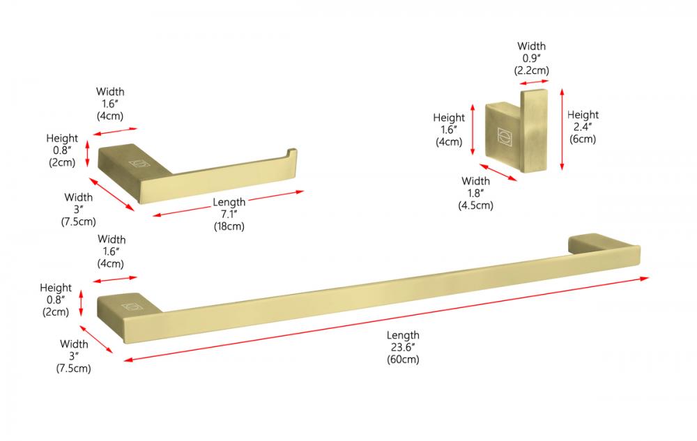 Introducing our Bathroom Hardware Set, available in a range of stunning finishes including brushed gold, brushed nickel, Chrome, and Matte Black. This comprehensive set is designed to elevate your bathroom, providing a well-organized and stylish space. It includes a 23.6" long towel bar, a 7.1" long toilet paper holder, and a practical 2.4" towel/robe hook, ensuring all your bathroom needs are met. Crafted from high-quality stainless steel, our hardware set not only adds a touch of luxury to your bathroom but also guarantees unrivaled durability. Stainless steel's inherent resistance to corrosion, stains, rust, and scratches ensures that your bathroom maintains its stunning appearance, just as it did on installation day. The open-ended design of the toilet paper holder simplifies roll replacement, offering both convenience and practicality. Installation is a breeze, with all the required mounting hardware included in the package, making it a straightforward and hassle-free DIY project. Each item is meticulously designed for easy wall-mounted installation, saving space and providing a secure solution for your bathroom. The stainless steel finish not only adds visual appeal but is also easy to maintain, eliminating the need for frequent scrubbing and polishing. The minimalist design of our hardware set ensures its versatility and adaptability to complement any bathroom decor, making it the ideal addition to your space. Invest in a bathroom that remains as stunning as the day you installed it, thanks to our hardware set's corrosion, stain, rust, and scratch resistance. Experience the perfect blend of style, convenience, and durability, complete with straightforward installation and effortless maintenance. Transform your bathroom with our versatile and practical Bathroom Hardware Set, providing a comprehensive solution for a more organized, stylish, and well-structured space.