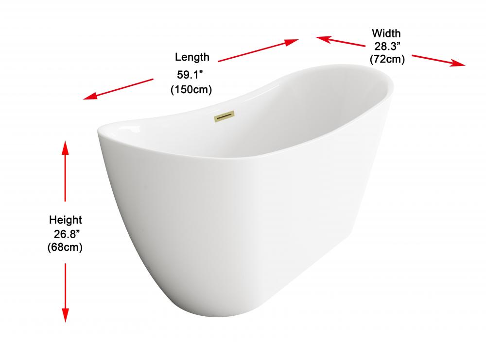 Elegant BT30459GW-BGD - Bathtub 59.1 x 28.3 x 26.7 GW with BGD drain kit
