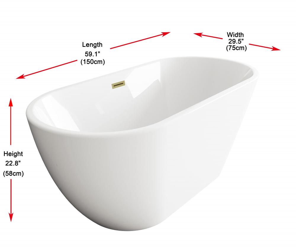 Immerse yourself in the ultimate relaxation experience with this elegant freestanding soaking bathtub. Its soft, rounded contours and gently sloping sides create a cocoon-like effect, inviting you to fully immerse yourself in luxurious relaxation. The smooth, rounded rim offers comfortable arm support, making it the ideal spot to unwind. Equipped with a pop-up drain and integrated overflow, this tub seamlessly combines convenience and style. with a generous capacity and 15-inch soaking depth, it's perfect for those looking to indulge in a deep, luxurious soak. Available with customizable drain trim finishes like brushed gold, matte black, and more, this bathtub is designed to fit your unique style. Durable and easy to install with adjustable foot levelers, this tub is both a statement piece and a functional retreat in your home.