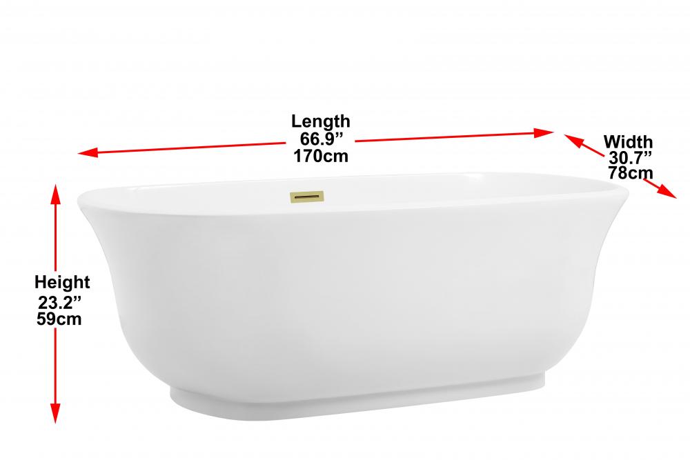 Indulge in the luxury of a spa-like experience right in your home with this stunning freestanding bathtub. Crafted from premium-quality acrylic, it is built to withstand daily use while maintaining its beautiful glossy finish. The stain and scratch-resistant surface ensures easy maintenance, keeping it bright and clean for years. The bathtub features gently sloped curves that hug your body, providing a deep and soothing soak. with a variety of metal trims to choose from, you can easily coordinate your tub with your faucet and bathroom fixtures. Easy to install and versatile in placement, this freestanding bathtub is the perfect centerpiece for any modern bathroom.