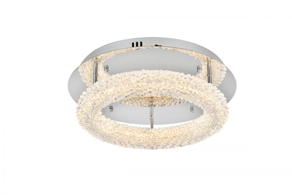 Illuminate your surroundings with the enchanting Bowen 18 inch LED Flush Mount, showcasing a captivating round crystal-adorned design for a touch of sophistication. with an impressive LED lifespan of 20,000 hours, this light delivers enduring brilliance to your space. Enjoy a swift and user-friendly installation experience with no assembly required. Choose from three color temperatures (3000K, 4500K, 6000K) to set the perfect mood. Crafted with durable Iron and Crystal materials, ETL listed for safety compliance, and featuring integrated LED technology, this flush mount ensures long-lasting and hassle-free illumination.