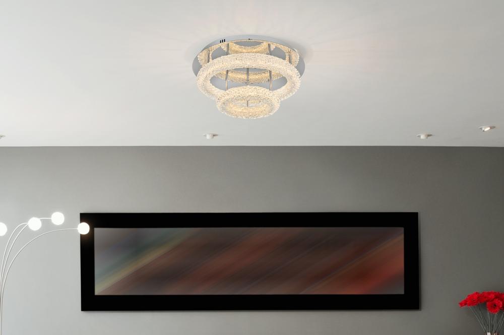 Illuminate your space with this enchanting 22 inch LED Tiered Flush Mount, showcasing two captivating rings adorned with crystals for a touch of sophistication.