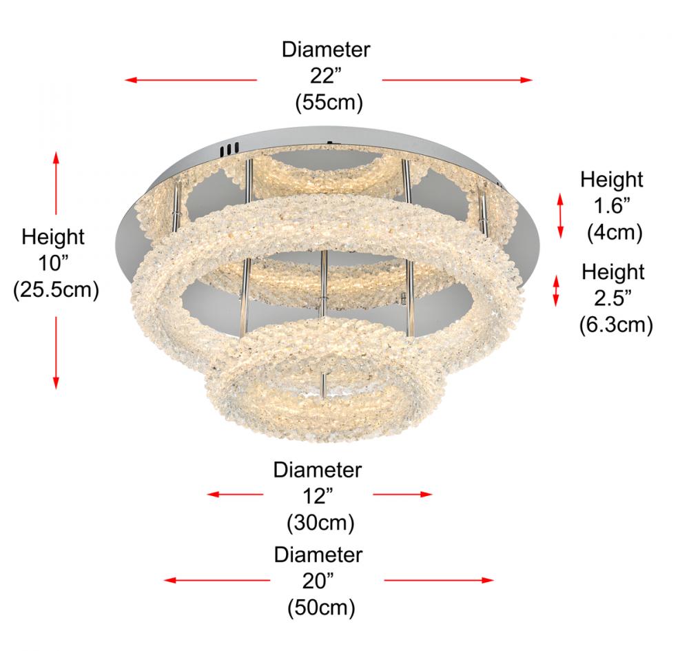Illuminate your space with the enchanting Bowen 22 inch LED Tiered Flush Mount. This light boasts an impressive LED lifespan of 20,000 hours, providing enduring brilliance for your space. No assembly required, ensuring a swift and user-friendly installation experience. Choose from three color temperatures (3000K, 4500K, 6000K) to set the perfect mood for any occasion. Crafted with durable Iron and Crystal materials for long-lasting reliability. ETL listed for safety compliance, ensuring a secure and reliable lighting solution. Integrated LED technology means you'll never have to buy bulbs, ensuring long-lasting and hassle-free illumination.