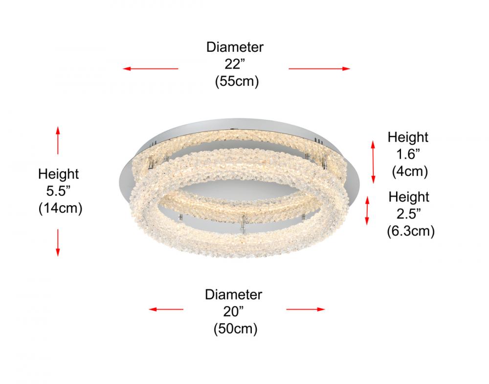 Elevate your space with this enchanting 22 inch LED Flush Mount, featuring a captivating round crystal-adorned design for a touch of sophistication.