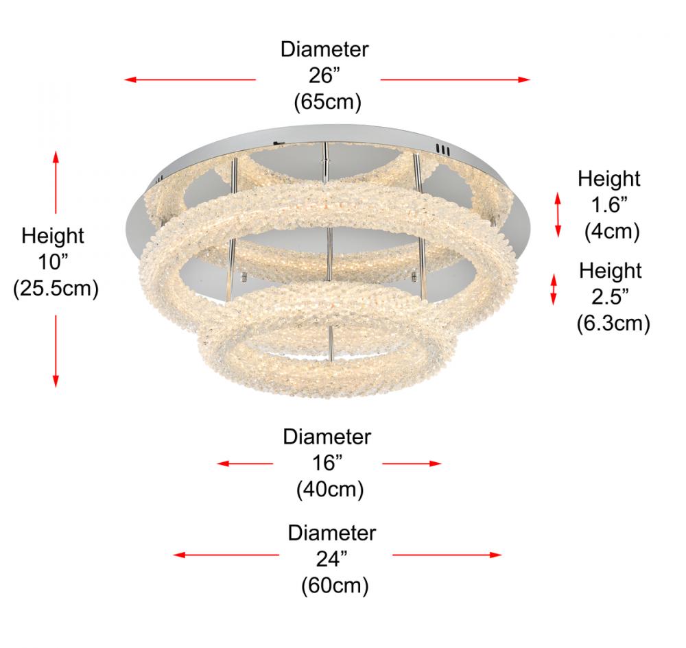 Illuminate your space with the enchanting Bowen 26 inch LED Tiered Flush Mount. This light boasts an impressive LED lifespan of 20,000 hours, providing enduring brilliance for your space. No assembly required, ensuring a swift and user-friendly installation experience. Choose from three color temperatures (3000K, 4500K, 6000K) to set the perfect mood for any occasion. Crafted with durable Iron and Crystal materials for long-lasting reliability. ETL listed for safety compliance, ensuring a secure and reliable lighting solution. Integrated LED technology means you'll never have to buy bulbs, ensuring long-lasting and hassle-free illumination.