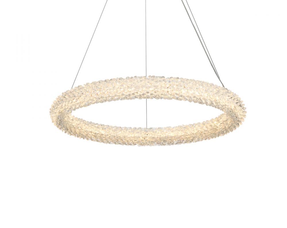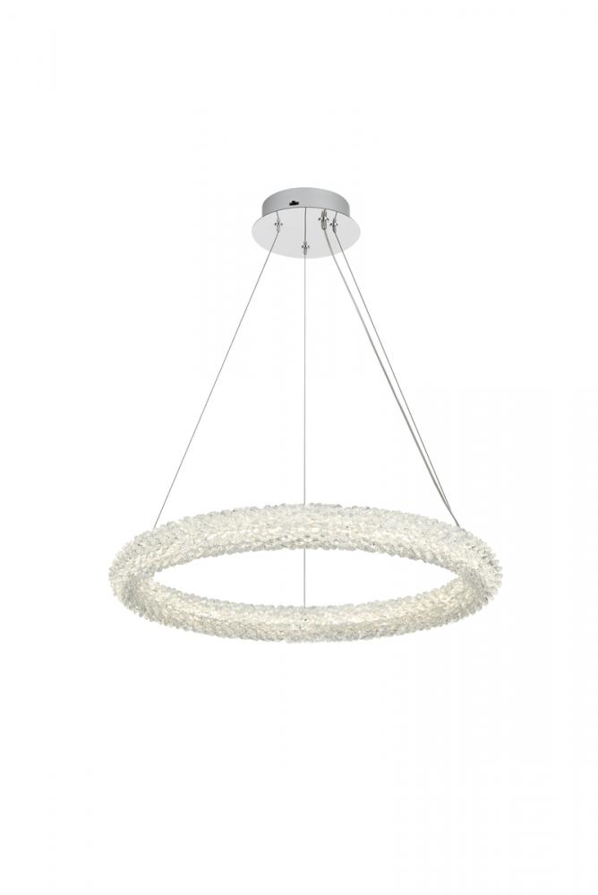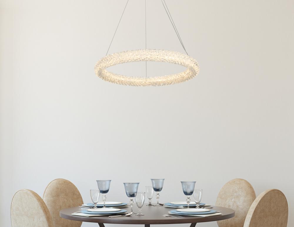 Elevate your surroundings with the chic design of this 24 inch LED Chandelier, showcasing a captivating round crystal-adorned chandelier and an elegant 7-inch canopy for a touch of sophistication.