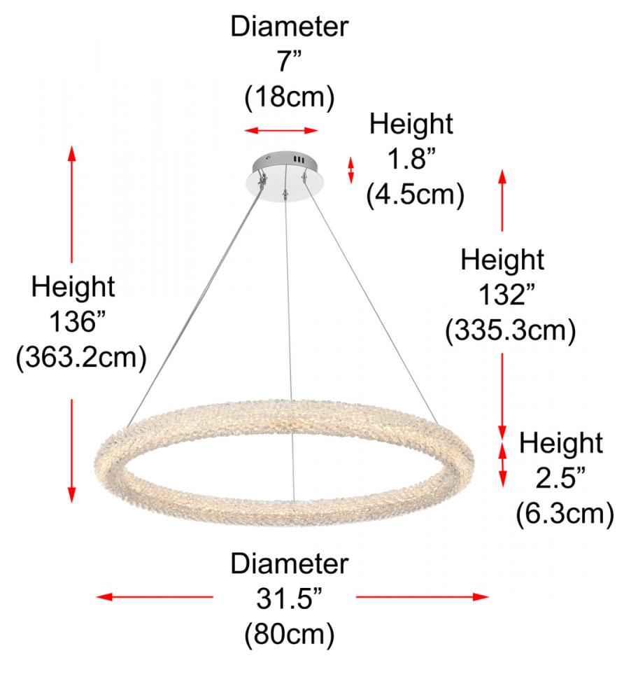 Elevate your space with our 32-inch LED Chandelier, a perfect blend of chic design and sophistication. Customize your lighting with an adjustable height from 10 to 136 inches. Experience a hassle-free installation with no assembly required. Choose from three color temperatures (3000K, 4500K, 6000K) to set the perfect mood for any occasion. Crafted with durable Iron and Crystal materials, this chandelier promises long-lasting reliability. ETL listed for safety compliance, it ensures a secure and reliable lighting solution. Embrace hassle-free brilliance with integrated LED technology, eliminating the need to buy bulbs for enduring and maintenance-free illumination."