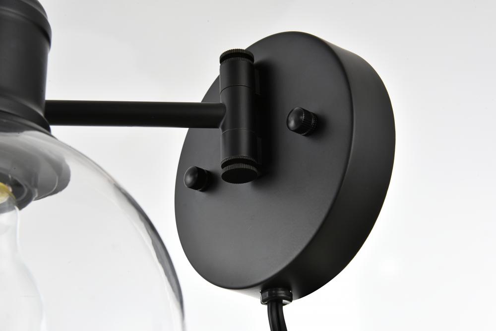 Caspian 1 light Black and Clear swing arm plug in wall sconce