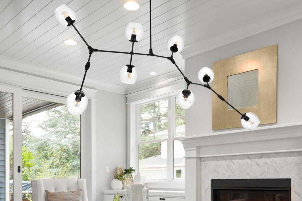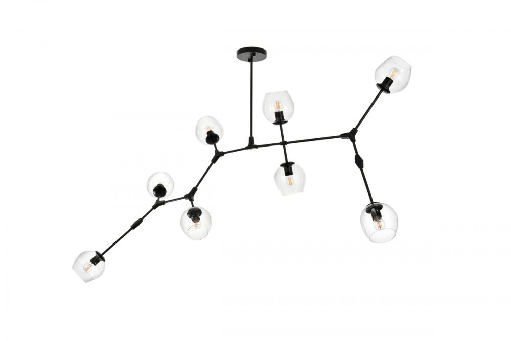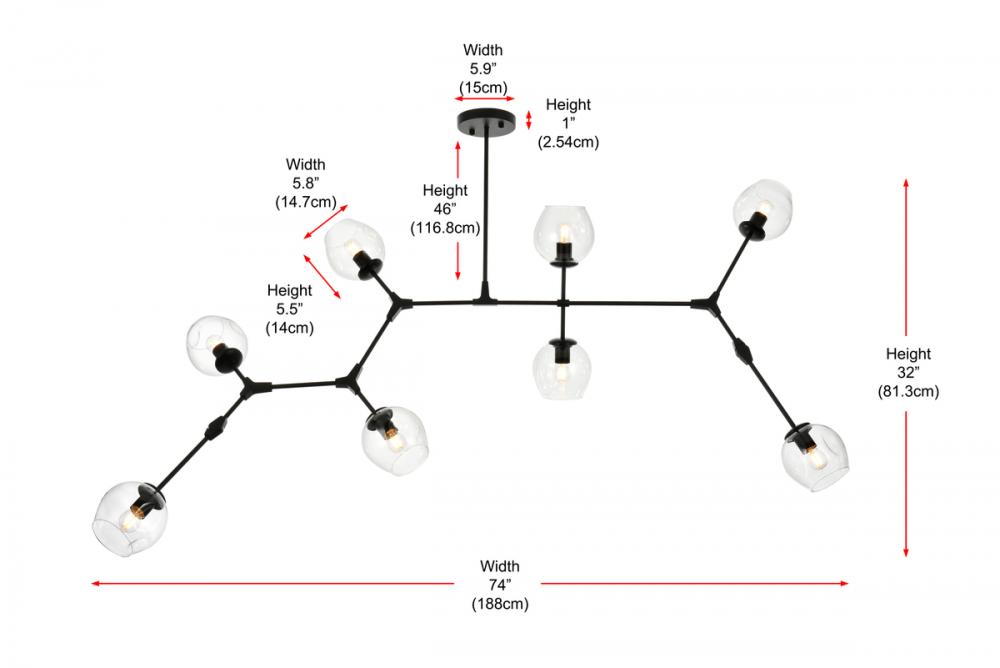 Introducing the Cavoli 74-Inch Chandelier, a perfect fusion of contemporary design and geometric allure. Crafted from durable iron, this visually captivating centerpiece not only adds a sleek modern aesthetic to your space but also ensures a robust and enduring lighting solution. The chandelier holds UL certification, guaranteeing safety and performance adherence. Boasting eight lights with clear glass globe shades, this chandelier offers a stunning visual display, complemented by a dimmable feature for personalized lighting preferences. (Bulbs not included). Illuminate your space with confidence and style.