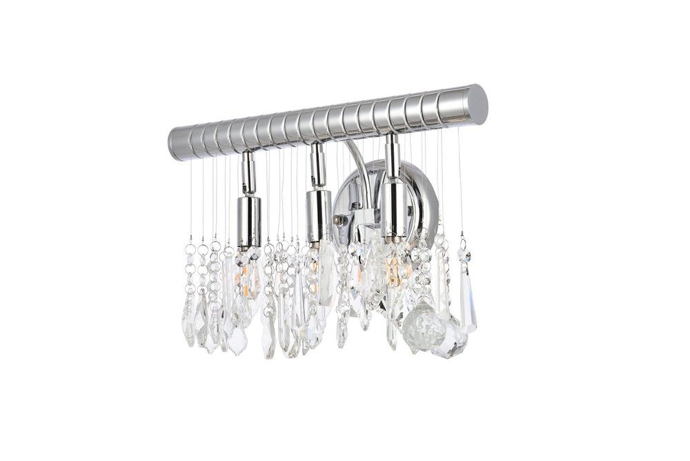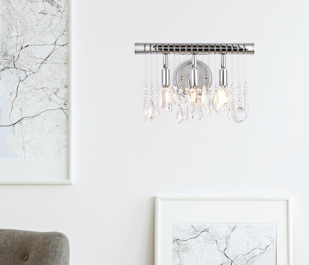 Like a Broadway show, the Chorus Line wall sconce dazzles in perfect synchronicity. The ensemble of royal-cut crystals dance together to bring a spectacular performance of light to your bedroom, dining room, or entryway. The profusion of crystal prisms, pears, balls, and beads appear to be dangling in the air, backlit with candelabra bulbs (not included) for an overall glow from end to end. This refined, yet jazzy number will get great reviews from your guests as you bring them a show of illumination they will never forget.