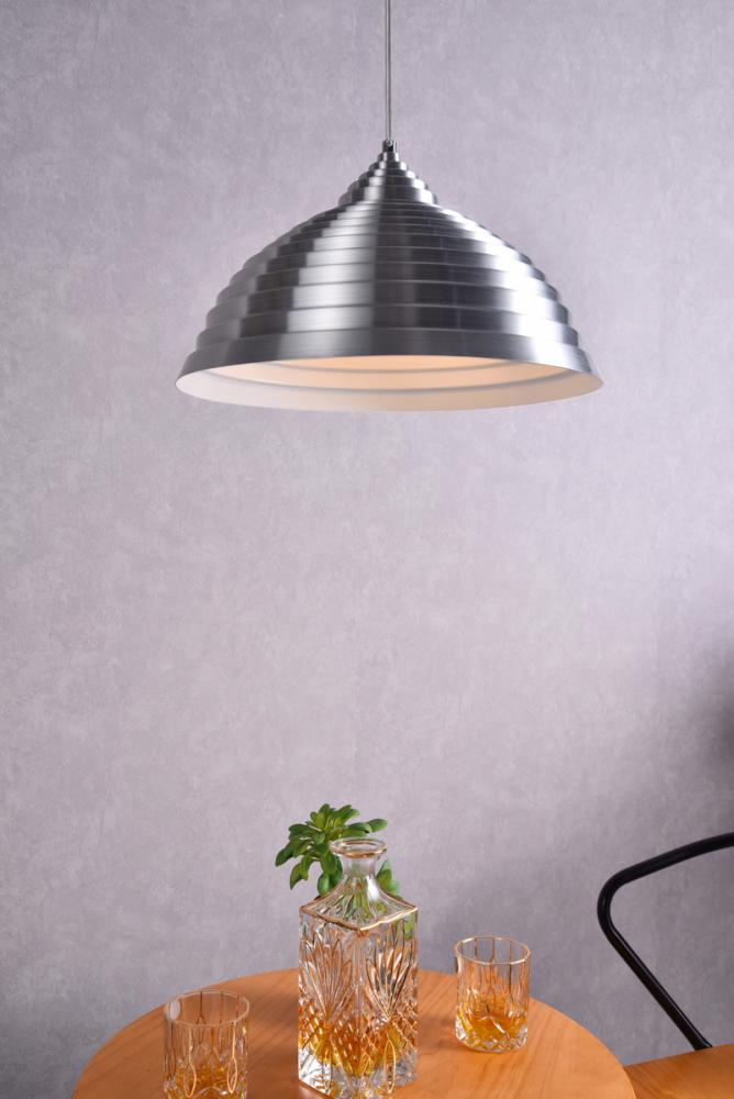 The ribbed, burnished nickel aluminum shade adds another touch of visual distinction
