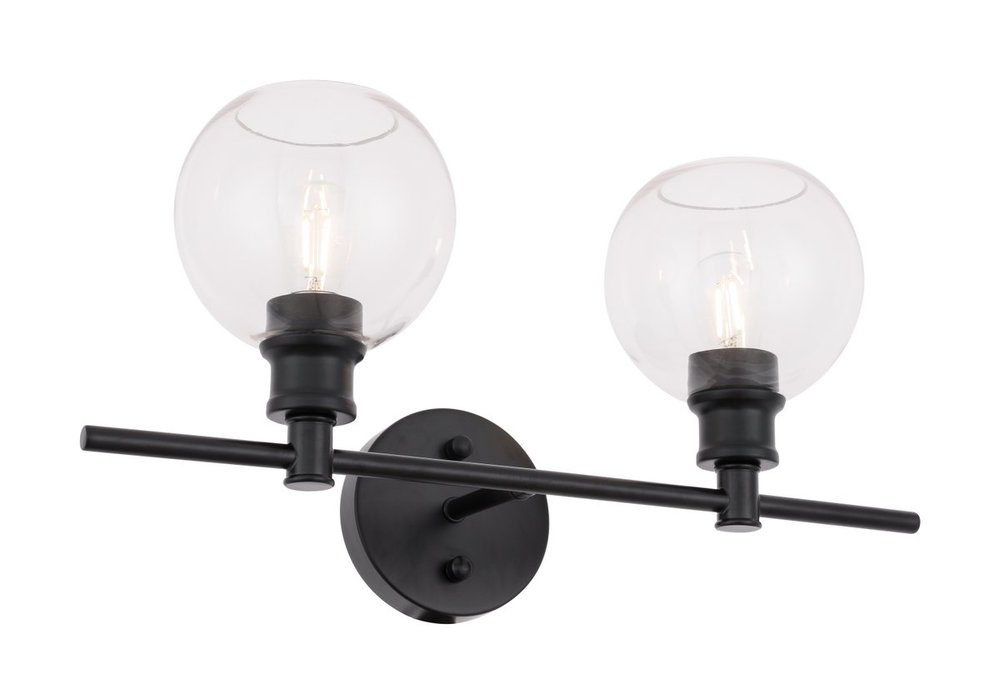 The Collier Collection of lights will be sure to have your guests admire your modern sense of style with the beautiful simplicity of its shape and form. The clean lines of the ball shaped shades create the juxtaposition of intricate simplicity, achieving a style that has both form and function. This wall lamp can be oriented facing up or down, but will always illuminate your room. Available in a brass, chrome, or black finish with either a clear or frosted ball glass shade, it is the perfect wall lamp to enhance your bathroom, foyer, or hallways, allowing you to always live a chic and fashionable lifestyle (light bulbs not included).