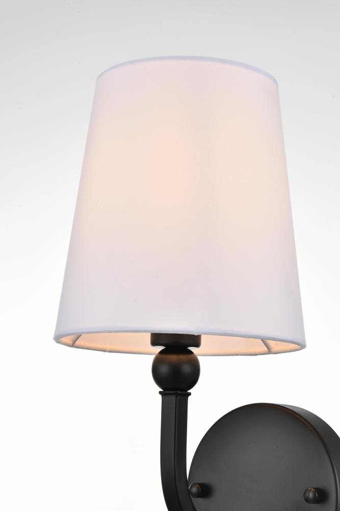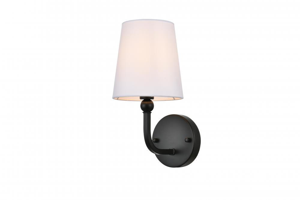 A modern twist on a traditional design, this vanity light is perfect for sprucing up your bathroom. Rated for use in damp locations, this iron fixture features a round backplate, curved arms, and fabric shade accents. Completely versatile, you can place this wall light as an uplight or downlight. Rated for use in damp locations, this will work perfectly over a vanity in your bathroom.