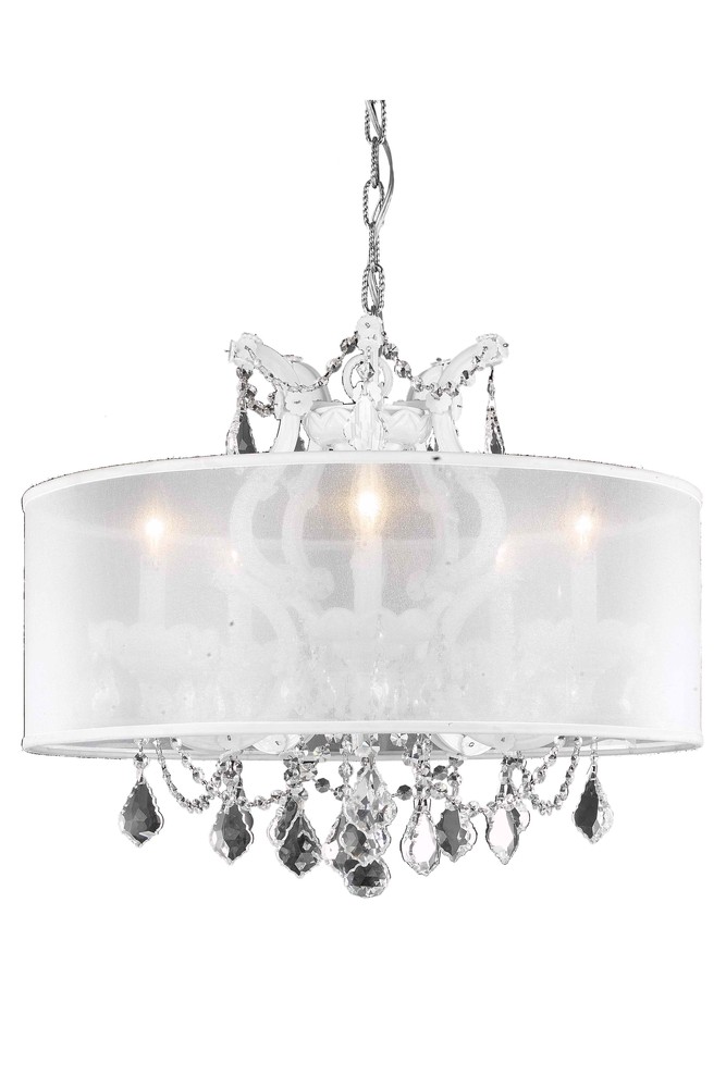2800 Maria Theresa Collection Hanging Fixture w/ Silver Round Shade D23in H25in Lt:5+1 White Finish (Swarovski Strass/Elements Crystal)