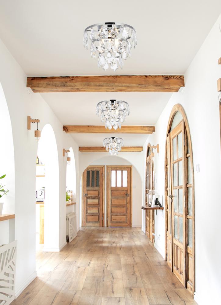 Install this flush mount in any room to give an elegant look. This stunning light features hand painted finish and clear brillant crystals which gives a classy look. Set a cozy atmosphere when you switch on this dazzling fixture and captivate your guests.