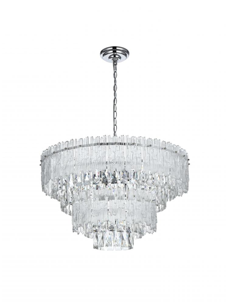 Features multiple tiers of high-quality crystal prisms that create a captivating display of light and sparkle.