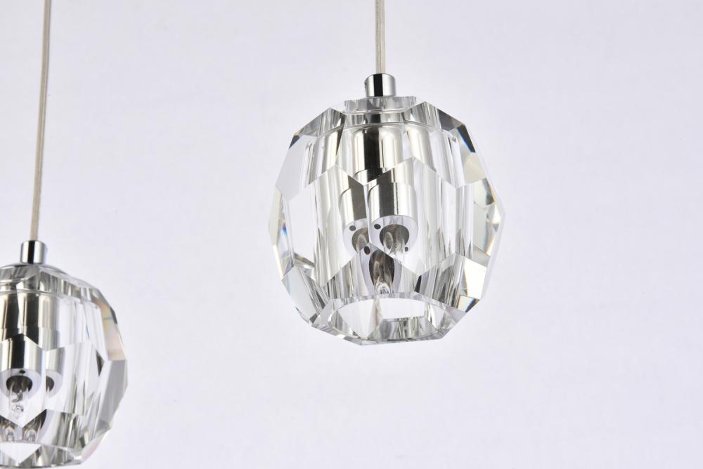 Like enchanting bubbles of air surfacing from the fathoms of the deep sea, the Eren contemporary hanging pendant adds lighting with richness and grace. The layering of clear crystal globes offer softened, harmonious light to match a variety of home décor. Creating an environment of sophistication, this beautiful hanging pendant adds drops of magic to express your refined style.