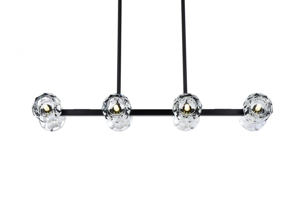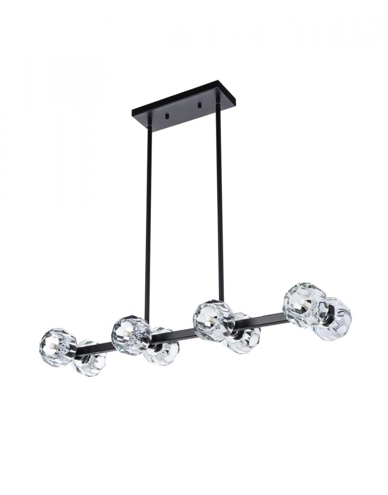 Presenting the Eren 31-inch pendant light—a beacon of sophisticated elegance. Eight lights, adorned with faceted crystal glass shades, emit a luxurious and dazzling radiance, creating a timeless atmosphere of charm. Crafted with durability in mind, the robust iron base adds an industrial touch to the contemporary design. with two 46-inch rods for stability and a sleek modern aesthetic, the Eren pendant light offers a hassle-free setup. Illuminate your space with Eren, epitomizing style, durability, and radiant sophistication.