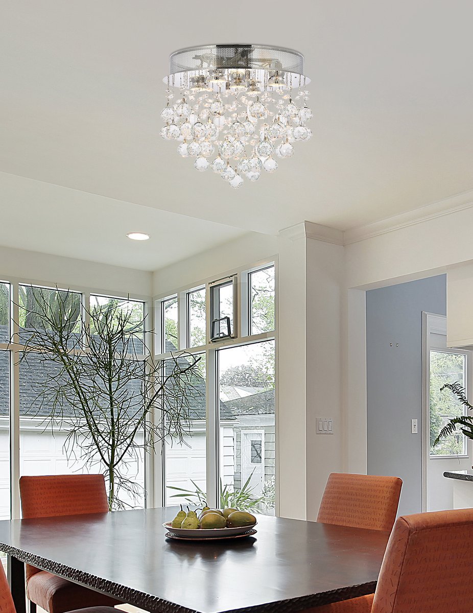 The Galaxy collection is brilliantly distinctive for its flush-mount fixtures’ many dazzling crystals of various sizes and shapes suspended and gently spinning in space. Illumination from the chrome-finish base lights up a room with both direct light emitting downward and refracted radiance from the multi-faceted crystals below. Available in a choice of crystal trims.