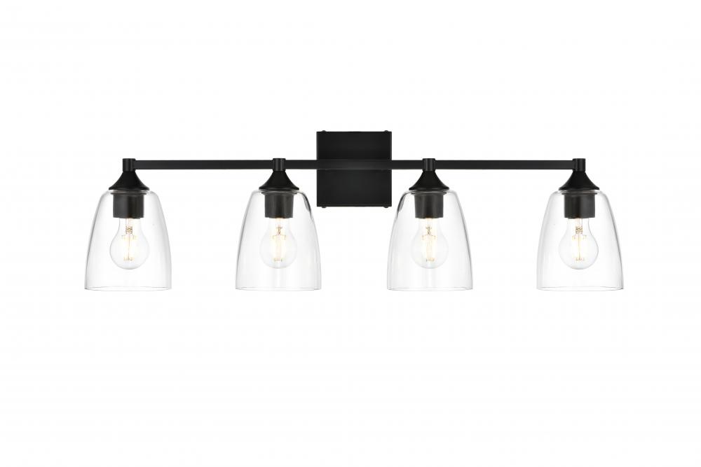 Defined by a sleek metal arm extends to suspend the clear tapered glass shade. A contemporary stunner, it shows off the straight line details from the backplate and the streamline thick metal arm. Compatible with dimmers, so you'll have the right amount of light in any given time of the day. Completely versatile, you can place this wall light as an uplight or downlight. Rated for use in damp locations, this will work perfectly over a vanity in your bathroom.