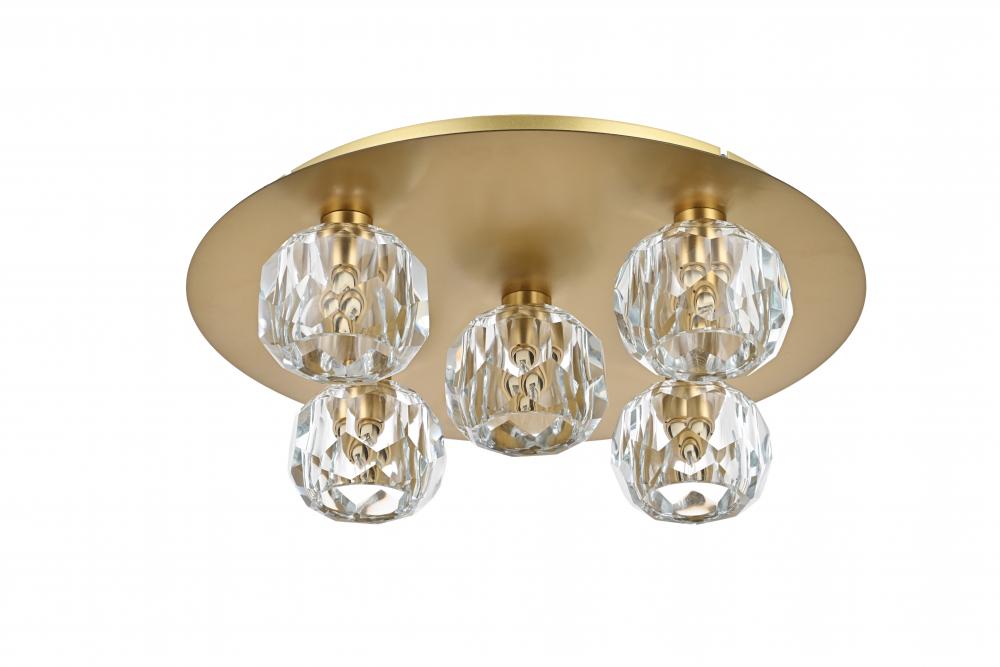 Hexagonal and pentagonal facets on the 4 inch crystal spheres tastefully diffuses the soft illumination from each arm