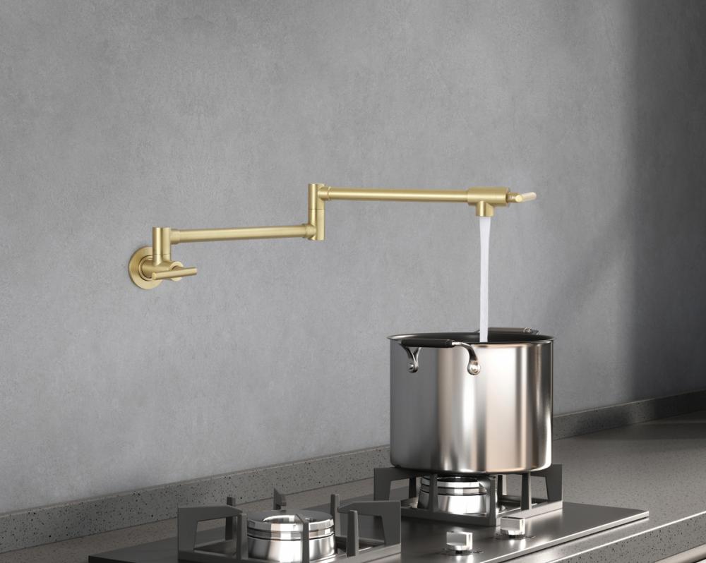 Crafted from high-quality brass, our pot filler faucet is not only corrosion-resistant but also built to last. It provides durability and adds a touch of timeless elegance to your kitchen.
