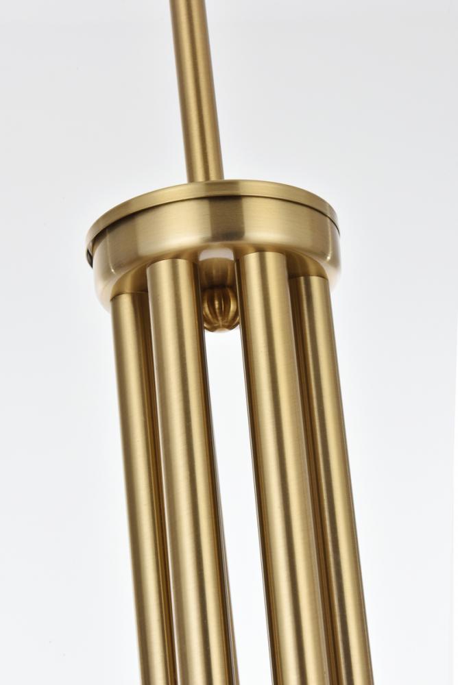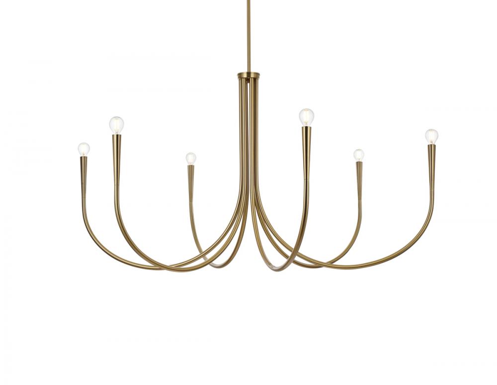 Equipped with six arms, this chandelier provides generous illumination to brighten up any space. Each conical end ensures a focused and balanced distribution of light, creating a warm and inviting atmosphere. The smooth and curved design of the tubular arms creates a gentle, inviting glow that bathes your room in a soft, diffused light. Enjoy a welcoming ambiance that beckons you to unwind and relax. The arms of this chandelier ingeniously stack vertically, forming a stunning display of tubes that adds depth and dimension to the overall design. This unique arrangement sets it apart from traditional chandeliers, making it a true conversation starter. Sloped ceiling adaptable with a durable swivel could be mounted on vaulted or angled ceilings.