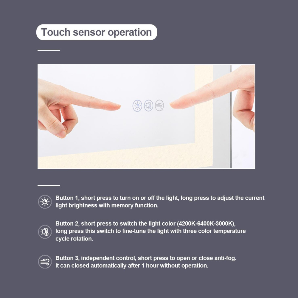 Redefine your daily routine with this ultra-modern LED mirror, designed to offer the perfect blend of style and functionality. Featuring both front and back illumination, this mirror provides a soft yet powerful glow that enhances your space with a luxurious ambiance. The adjustable color temperature (ranging from 3000K to 6400K) allows you to customize the warmth or coolness of your lighting, while the dimmable function lets you create the perfect brightness level. With a 90 CRI rating, this mirror ensures accurate color representation, making it perfect for grooming, makeup application, or daily self-care. The built-in defogger keeps your reflection clear and can be turned on or off at your convenience. Thanks to the touch sensor controls, adjusting your mirror's settings is effortless, and the memory function saves your last preferred settings for a seamless experience. Designed for versatile installation, this mirror can be hung vertically or horizontally using the included French cleats, making it a stunning and adaptable addition to any bathroom or vanity. It can be hardwired or connected to a wall switch for your convenience. Elevate your space with a mirror that not only reflects your image but also enhances your everyday routine with smart, modern lighting.