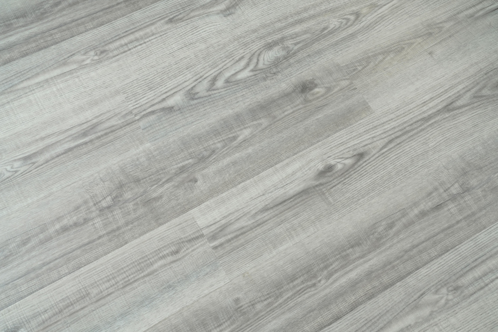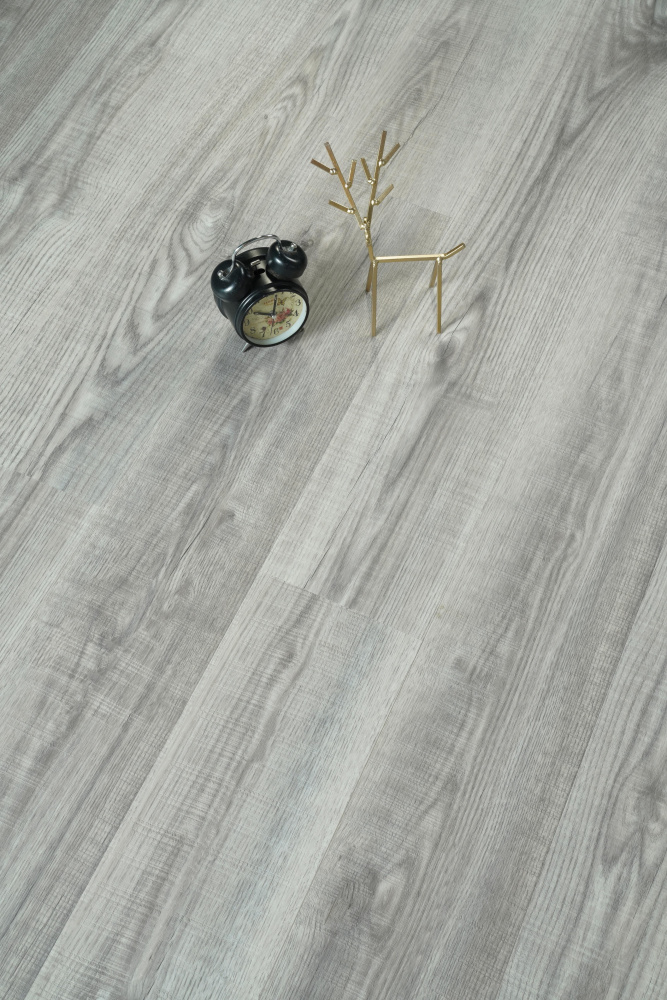Elevate your space with our premium SPC flooring that combines a sophisticated gray wood grain pattern with advanced 12 mil wear layer technology, 70% PVC construction.
