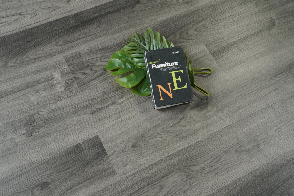 Elevate your space with our premium SPC flooring that combines a sophisticated gray wood grain pattern with advanced 12 mil wear layer technology, 70% PVC construction.