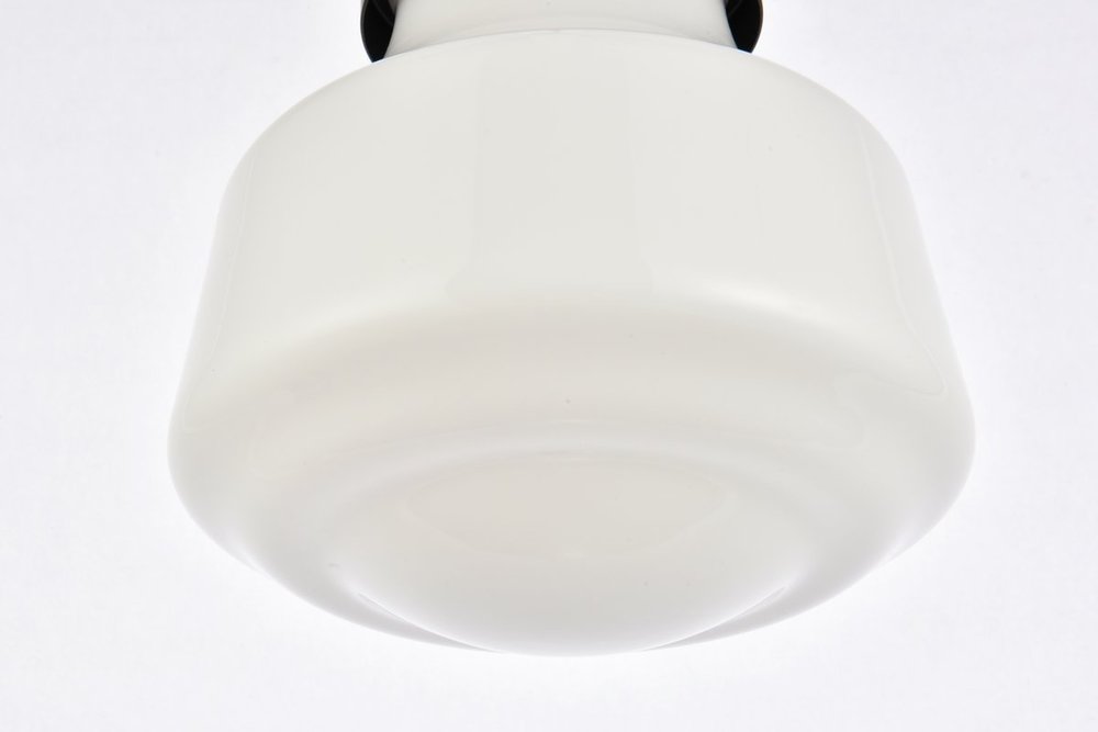 Pendant lamp features a black and frosted white glass.