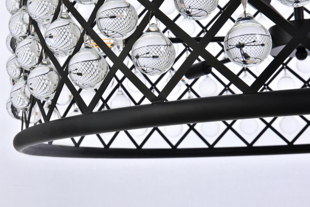 Modern simplicity meets organic beauty in the breathtakingly unique Madison collection. Hand-polished, multifaceted clear crystal spheres shimmer like dewdrops in a circular forged-iron grid with a golden-iron, Matte Black, or polished-nickel finish. These airy pendant lamps will brighten up a kitchen, dining room, foyer, or stairwell in an explosion of reflected light.