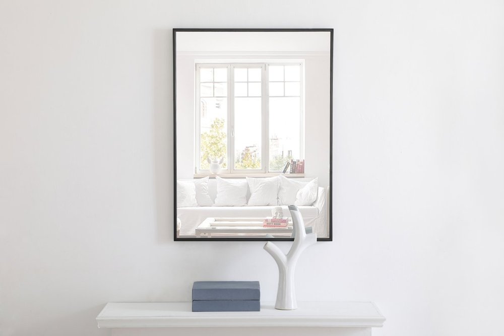The classic clean and straight lines of this rectangular mirror provide you with a timeless and elegant look to accent any room or hallway in your home or office, featuring an ultra-thin black metal frame in deep profile, refecting a minimalist's design and industrial styling. To ensure your home safety, we uses metal hanger bar that are securely welded to the back of the metal frame. We recommend using suitable heavy duty picture/mirror hooks, selecting the best type of fixing for the particular wall you wish to hang the mirror on, using the appropriate rawl plug if required. Measurement: 24x32, hang vertical or horizontal.