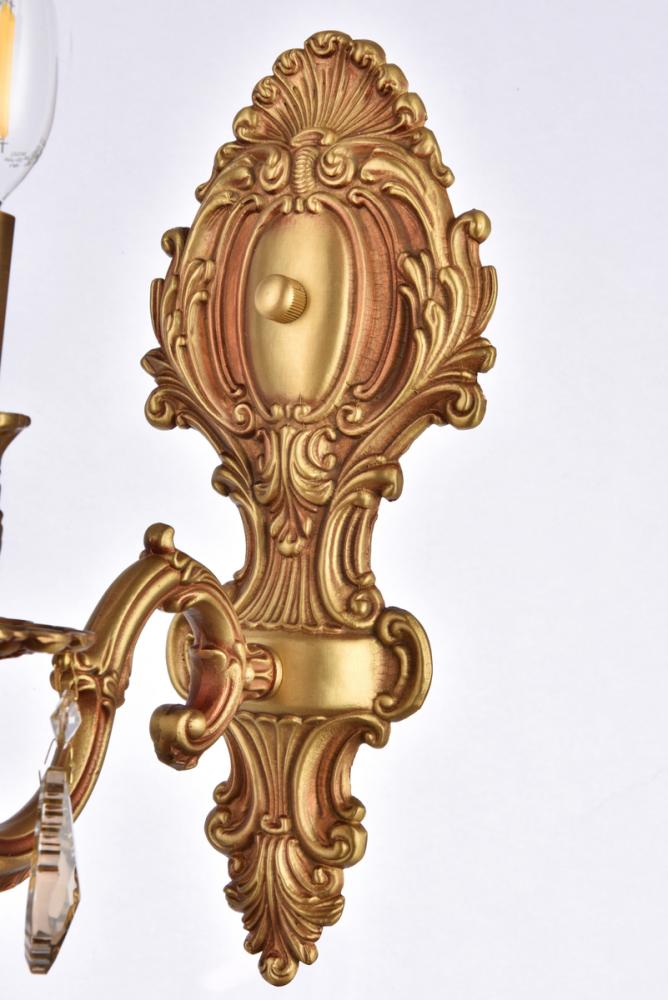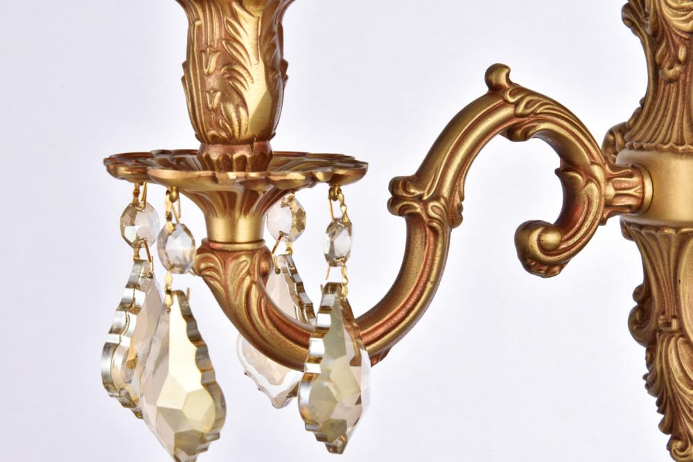 Regal and distinct, the Monarch collection of wall sconces flaunts a swirling vision of scrolls and crystal. A graceful oval backplate, accented with ornate curlicues, supports one, two, three, or five scrolled arms. The frame is finished in pewter, dark bronze, or French gold. Sculpted candle holders add to the dramatic effect, while the soft candelabra lights (bulbs not included) add the finishing touch to this spectacular design. A majestic addition to an entryway, office, or bathroom.