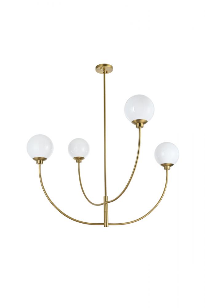 Make a statement in your interior with this unique pendant. Its swiveling arms with glass frosted globes are sure to be a conversation starter and a focal point in any room.