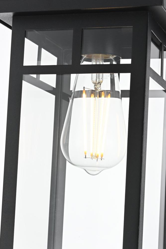 Bring classic craftsmanship and elegant simplicity to your outdoor spaces with this rectangular pendant light. with its craftsman-inspired design, featuring a sturdy black metal frame and clear glass panels, this pendant embodies timeless sophistication and modern functionality. The visible bulb design allows for maximum light output, while the matte black finish complements a range of outdoor aesthetics, from traditional to contemporary. Constructed with durable weather-resistant materials and certified for wet locations, this pendant is perfect for entryways, porches, or patios, ensuring long-lasting illumination. with its adjustable chain, you can easily customize the hanging height to perfectly suit your outdoor decor. Illuminate your home's exterior with this stylish pendant light, creating a welcoming atmosphere for your guests.