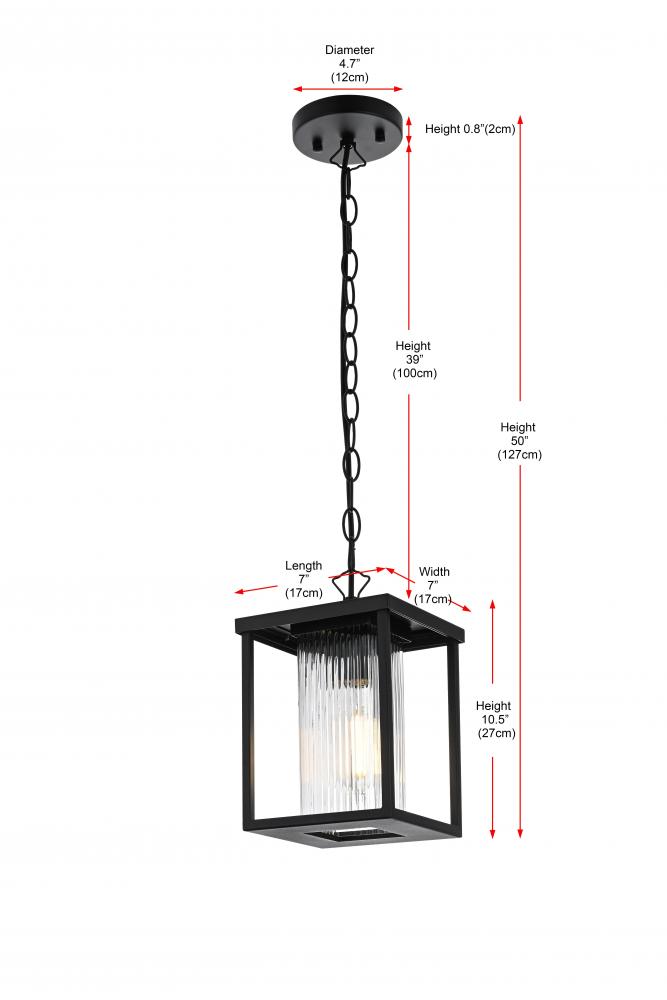 Enhance your outdoor space with this beautifully crafted outdoor pendant light. Featuring a rectangular fluted clear glass design, housed in a sleek black iron frame, this pendant provides both style and durability. The 39-inch adjustable chain allows you to customize the height to perfectly suit your space—from a cozy 17 inches to an impressive 50 inches. Rated for wet locations, this ETL-certified light is ideal for patios, porches, or entryways, while its E26 socket can hold up to 60-watt bulbs, offering ample light for your outdoor needs. Plus, it’s part of a cohesive collection, allowing you to create a harmonized look with matching wall sconces and pole lights. The combination of timeless design, quality craftsmanship, and flexible installation makes this pendant a must-have for elevating your outdoor aesthetics.