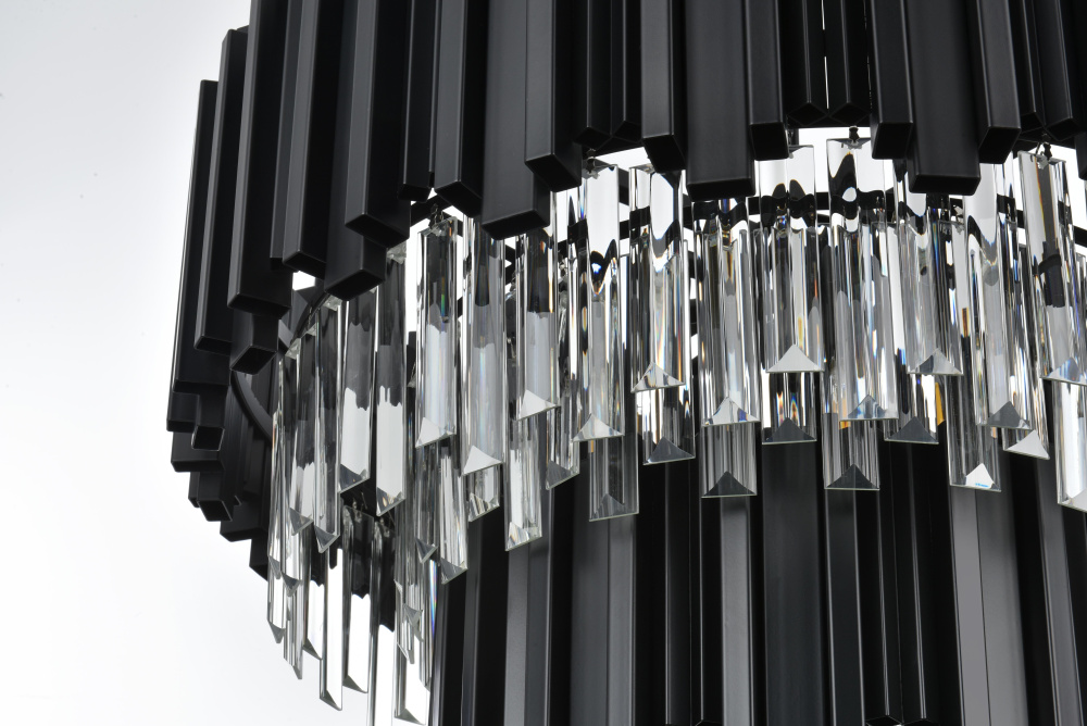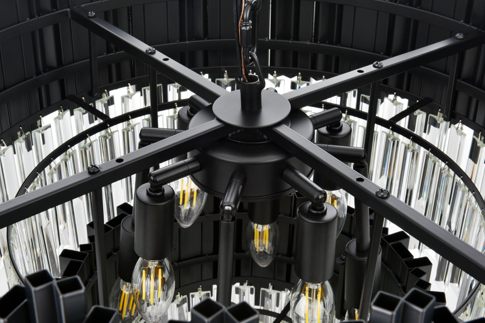 The black finish adds depth and drama, accentuating the geometric lines and creating a bold focal point.