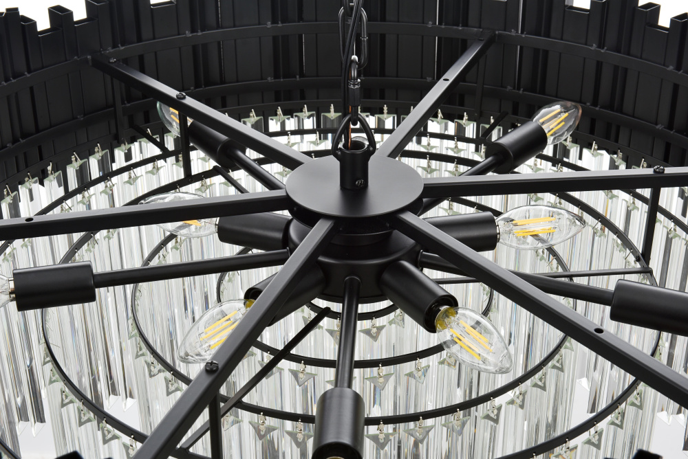 Transform your space with this stunning chandelier, a dynamic fusion of iron and staggered clear glass that exudes contemporary style and architectural artistry. The layered glass refracts light beautifully, creating a radiant display of glowing brilliance that fills the room with warmth and sophistication. The staggered arrangement of the metal and glass adds depth and dimension, making this chandelier an eye-catching centerpiece. Fully dimmable, it allows you to adjust the ambiance to suit any mood, from bright and vibrant to soft and inviting. Available in satin gold for a warm, luxurious vibe, chrome for sleek modernity, and black for bold, dramatic contrast, this fixture comes in various sizes to perfectly complement any space. Complete with a matching canopy, it’s an ideal choice for dining rooms, living rooms, or offices. Add a touch of refined geometry to your décor and bask in the brilliance of this radiant desi