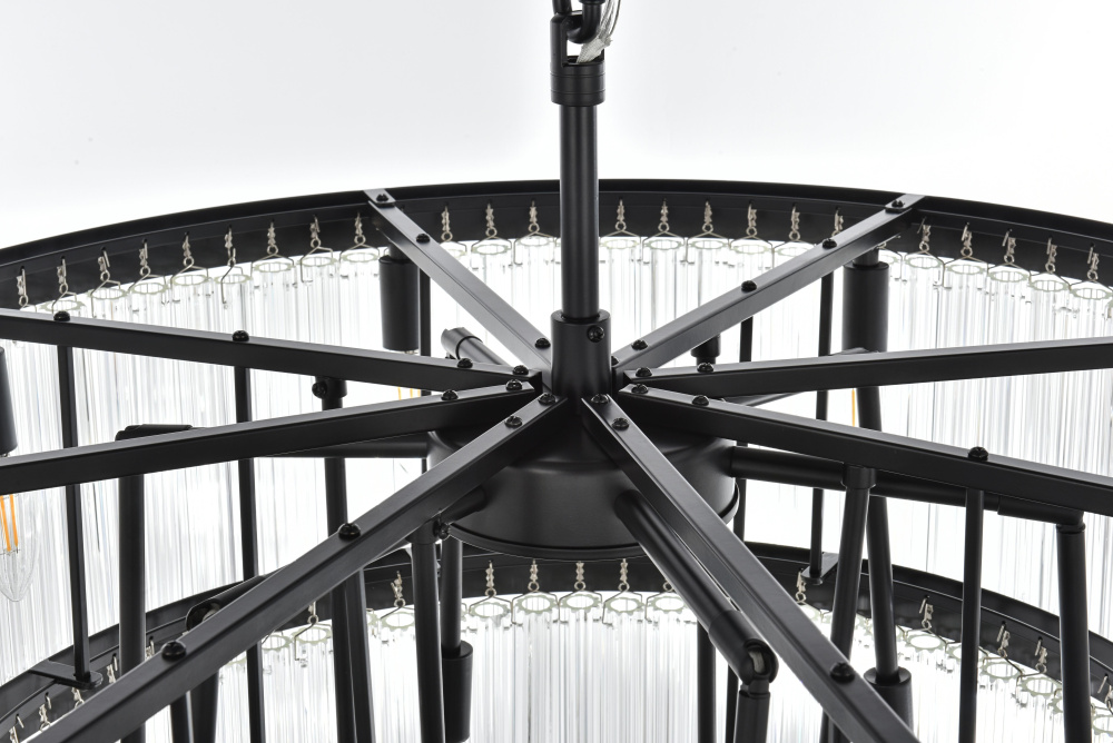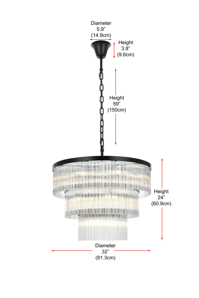 Turn your space into a glowing masterpiece with this striking pendant light, crafted from durable iron and shimmering clear ribbed glass. The cascading layers create a stunning interplay of light and shadow, refracting illumination into a radiant display that transforms your space into an illuminated work of art. Available in chrome for a sleek, contemporary aesthetic, black for bold contrast, and satin gold for an inviting warmth, this pendant light is as versatile as it is beautiful. Whether you choose a single tier for minimalist charm, two tiers for balanced depth, three tiers for bold presence, or four tiers for show-stopping grandeur, there’s an option for every setting. Featuring both round and rectangular frame designs, this fixture adapts to any space with ease. Complete with a matching canopy and chain, and fully dimmable for customized lighting, this pendant pairs perfectly with the coordinating single-tier flush mount and wall sconce collection, ensuring a cohesive, radiant design throughout youhome or office. Please note: light bulbs are sold separately.