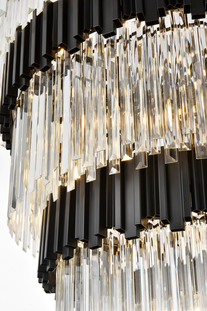 Transform your space with this stunning chandelier, a dynamic fusion of iron and staggered clear glass that exudes contemporary style and architectural artistry. The layered glass refracts light beautifully, creating a radiant display of glowing brilliance that fills the room with warmth and sophistication. The staggered arrangement of the metal and glass adds depth and dimension, making this chandelier an eye-catching centerpiece. Fully dimmable, it allows you to adjust the ambiance to suit any mood, from bright and vibrant to soft and inviting. Available in satin gold for a warm, luxurious vibe, chrome for sleek modernity, and black for bold, dramatic contrast, this fixture comes in various sizes to perfectly complement any space. Complete with a matching canopy, it’s an ideal choice for dining rooms, living rooms, or offices. Add a touch of refined geometry to your décor and bask in the brilliance of this radiant desi