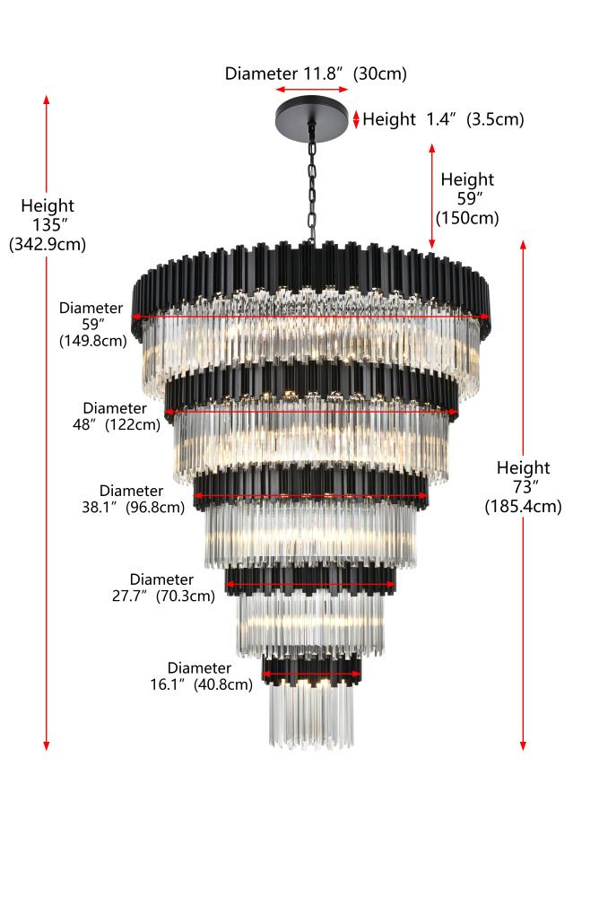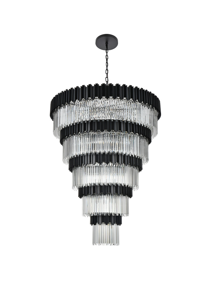 Transform your space with this stunning chandelier, a dynamic fusion of iron and staggered clear glass that exudes contemporary style and architectural artistry. The layered glass refracts light beautifully, creating a radiant display of glowing brilliance that fills the room with warmth and sophistication. The staggered arrangement of the metal and glass adds depth and dimension, making this chandelier an eye-catching centerpiece. Fully dimmable, it allows you to adjust the ambiance to suit any mood, from bright and vibrant to soft and inviting. Available in satin gold for a warm, luxurious vibe, chrome for sleek modernity, and black for bold, dramatic contrast, this fixture comes in various sizes to perfectly complement any space. Complete with a matching canopy, it’s an ideal choice for dining rooms, living rooms, or offices. Add a touch of refined geometry to your décor and bask in the brilliance of this radiant desi