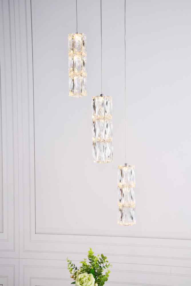The Polaris collection is the epitome of "cool" in lighting, because each of the fixtures has rectangular, elegant-cut crystals that look like ice cubes, gracefully suspended from a stainless-steel base with a bright chrome finish. Designed for rooms with higher ceilings, these fixtures are definitely stylistic attention-getters.