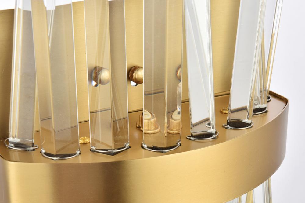 Modern crystal wall sconce features top and bottom tier crystal prisms staggered along a wrought iron frame. The thick metal frame wraps around top grade crystal prisms ensure it is built to last, definitely worth it. Mount this work of art and dim the lights for a bit of sophisticated lighting in your home. Get lost in a beautiful light and sleek design available in multiple finishes.
