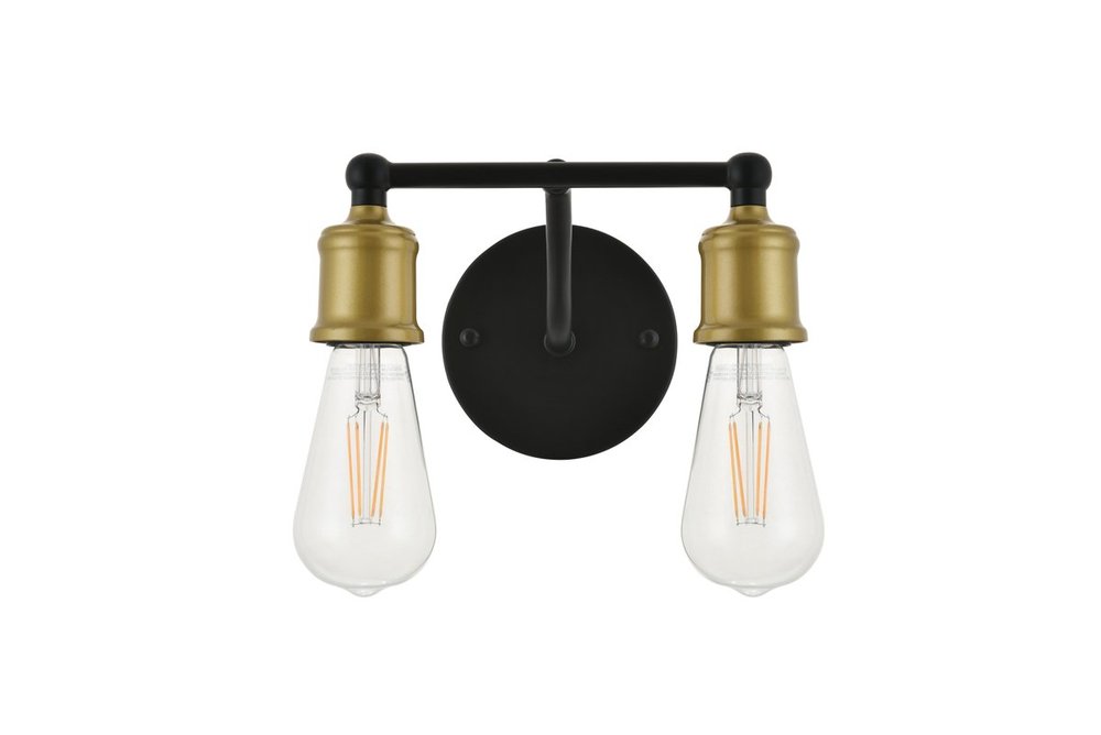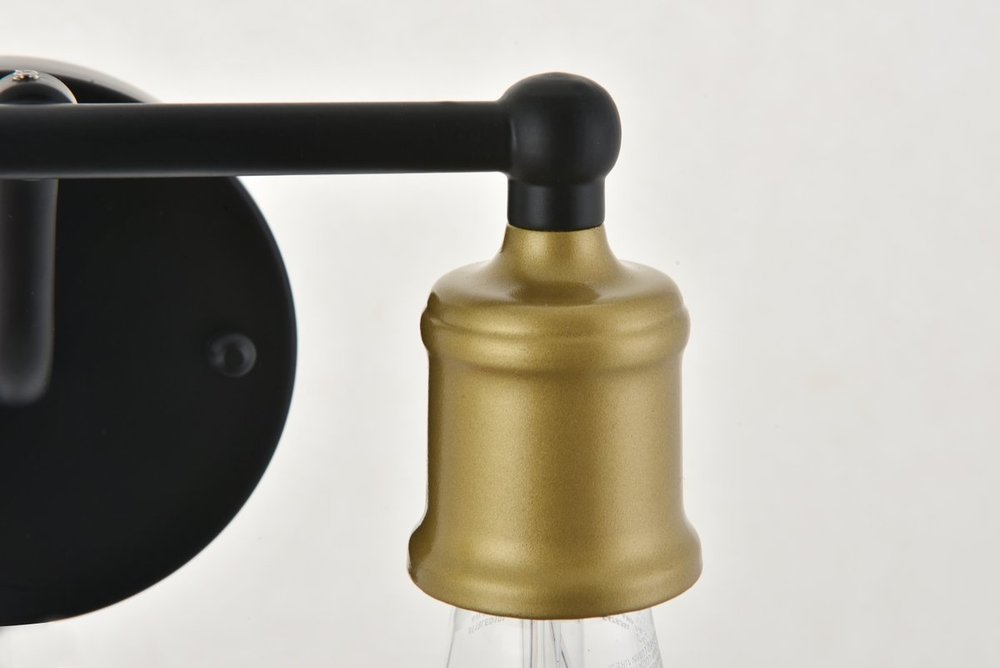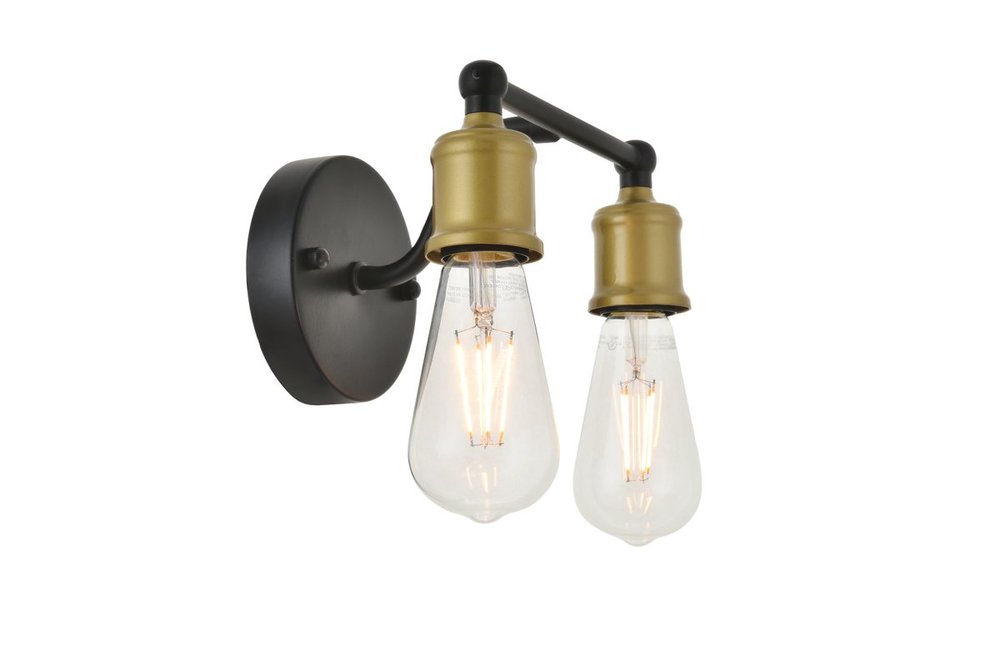 The classical elegance of the Serif collection wall lamp in a brass and black finish brings graceful allure. The arms--reminiscent of a classical font-- supports the 2 lights that emit a reassuring brilliance, and its gentle presence makes it a wonderful fixture to greet your guests at the entry way, illuminate your cabinets in the living room, or shine in the powder room.