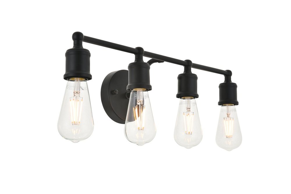 The classical elegance of the Serif collection wall lamp in a black finish brings graceful allure. The arms--reminiscent of a classical font-- supports the 4 lights that emit a reassuring brilliance, and its gentle presence makes it a wonderful fixture to greet your guests at the entry way, illuminate your cabinets in the living room, or shine in the powder room.