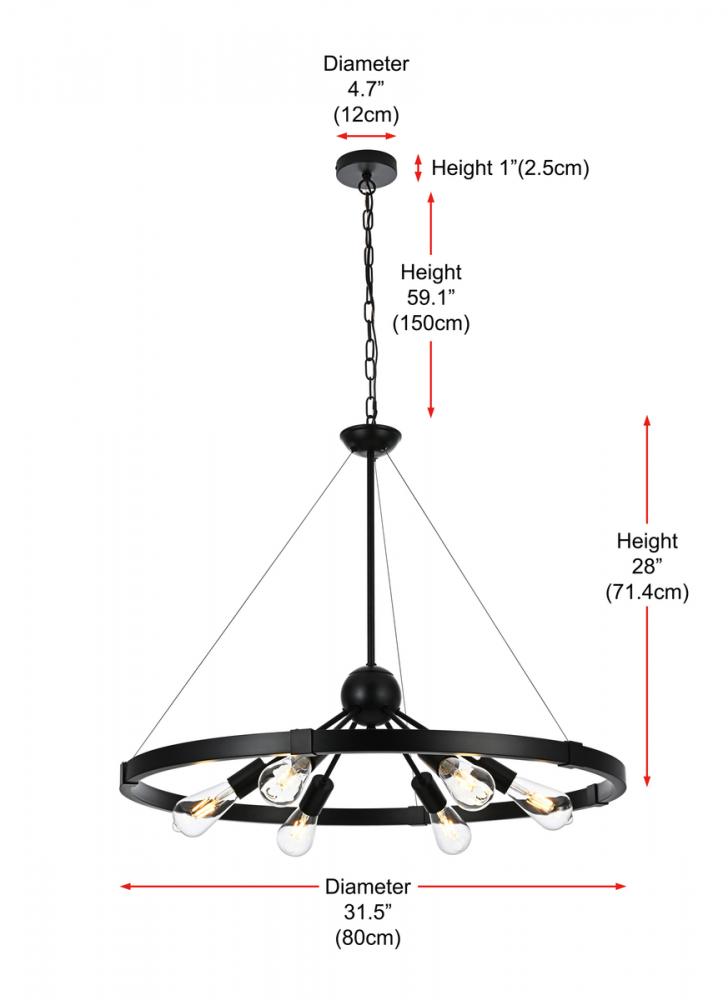 Illuminate your space with the Thora 32-inch Pendant Light. Elevate your home's ambiance with this striking centerpiece featuring a Sputnik-inspired design. Uniquely suspended by a chain, rod, and wires, with a customizable hanging between 40 and 89 inches. The iron construction guarantees durability and lasting quality, enhancing not only its structural integrity but also contributing to the rugged and industrial aesthetic of its overall look. Rest assured knowing our light is ETL certified, ensuring it not only adheres to stringent safety regulations but also delivers trusted quality and reliability in every aspect of its design and functionality. Welcome timeless style and brilliance into your living space with this exceptional pendant light.
