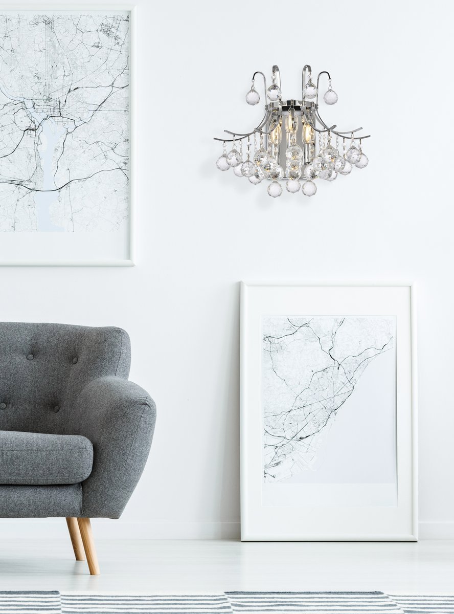 Jewelry for your walls, Toureg collection wall sconces bring the bling. Graceful steel arms curve from a steel frame and backplate available in chrome or gold finishes. Clear faceted crystal balls and a range of crystal octagon options dangle from every surface. The flawless adornment for a hallway, dining room, or living room.