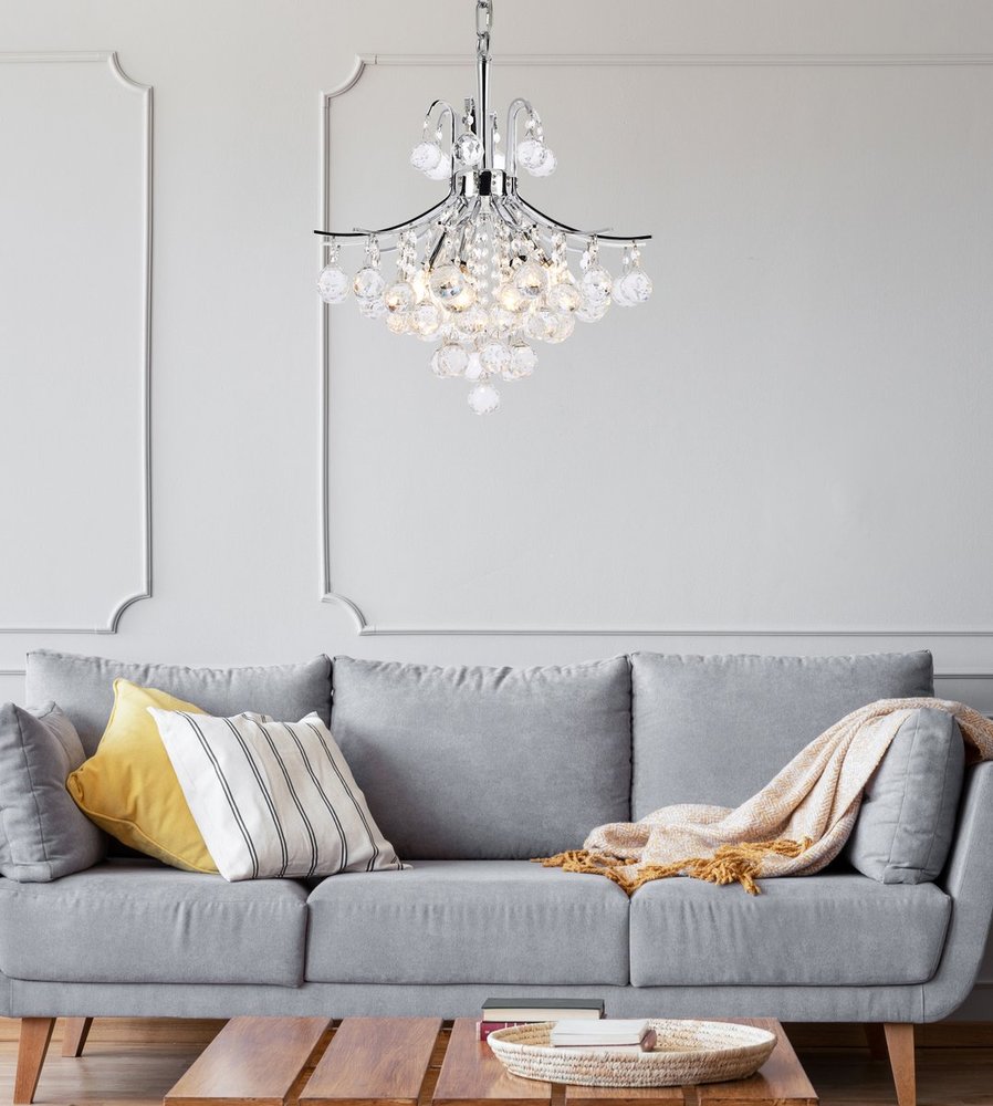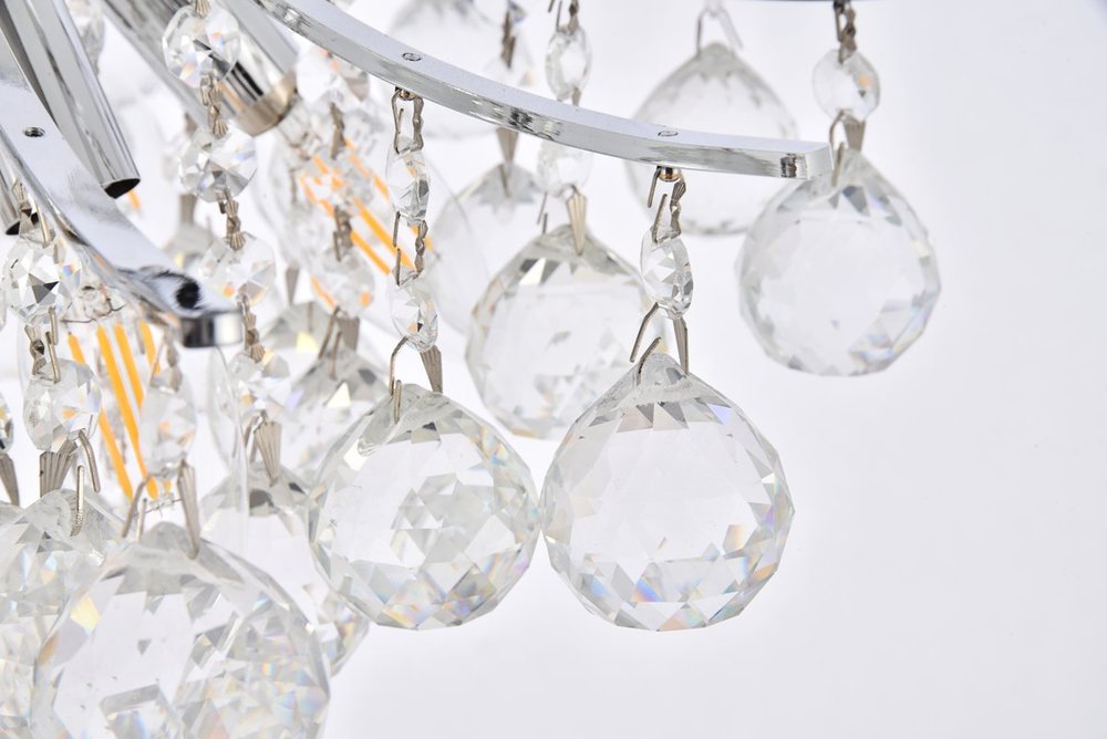 A treasure trove of glittering crystals, Toureg collection pendant lamps are generous with their sparkle. Stately curved steel arms and frame form an opulent flared shape available in chrome or gold finishes. Faceted clear crystal balls and crystal octagons offer a variety of options to choose from. Certain to be the center of attention in the dining room, living room, bedroom, or stairwell.